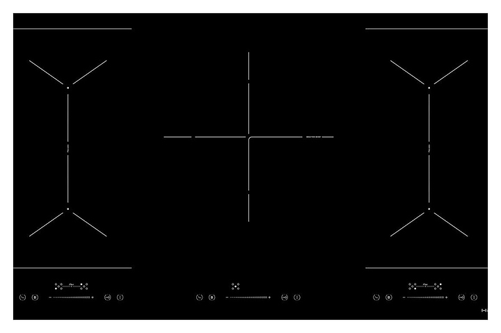 Flex Zone: объединение 2 варочных зон (2 правых и 2 левых) в расширенную для приготовления в крупногабаритной или произвольно размещенной в обозначенной области посуде