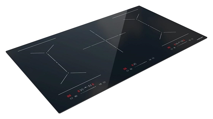 Индукционная варочная панель HiSTORY HI9532 BBK предназначена для приготовления большого ассортимента блюд в домашних условиях. Принцип работы основан на непосредственном нагреве металлической посуды создаваемыми высокочастотным магнитным полем индуцированными вихревыми токами. Модель оснащена 5 варочными зонами, кабелем питания без вилки, сенсорной панелью управления и 8 светодиодными цифровыми дисплеями с красной подсветкой индикации. Рабочая поверхность выполнена из высококачественной износостойкой стеклокерамики KANGER черного цвета с прямой кромкой.