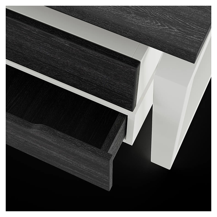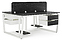 Офисный стол Кобор TB/2-160/160 white/glazed на 2 рабочих места используется в офисных помещениях и кабинетах руководителей. Модель оснащена опорами в форме обратной трапеции со скошенными верхними углами. Каркас и опоры выполнены из металла, выкрашенного в цвет белый муар (RAL9016), столешница – из ламинированной древесно-стружечной плиты (ЛДСП) цвета черный дуб (H3178 ST37). Дополнительные характеристики: