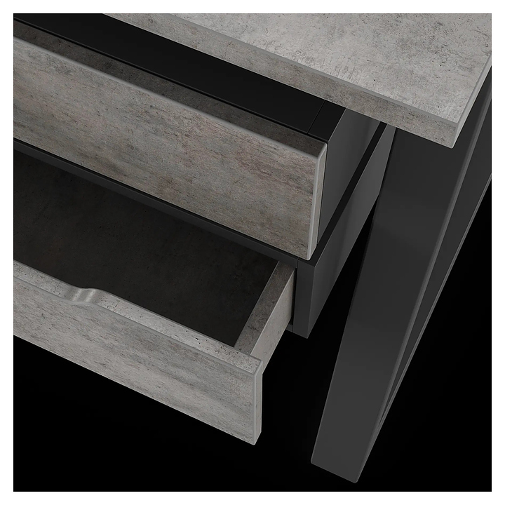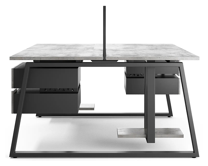 Офисный стол Кобор TR/2-180/160 black/chicago на 2 рабочих места используется в офисных помещениях и кабинетах руководителей. Модель оснащена опорами в форме трапеции. Каркас и опоры выполнены из металла, выкрашенного в цвет черный муар (RAL9005), столешница – из ламинированной древесно-стружечной плиты (ЛДСП) цвета бетон чикаго (F186 ST9). Дополнительные характеристики: