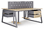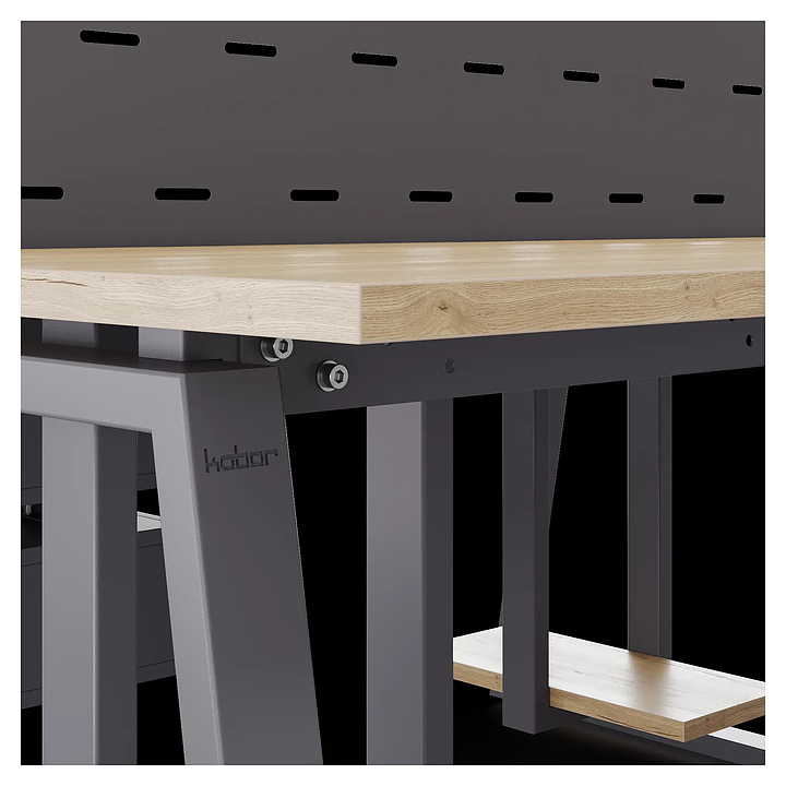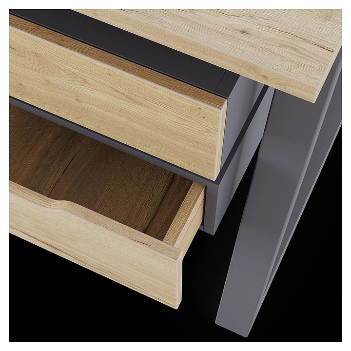Офисный стол Кобор TR/2-80/160 graphite/natural на 2 рабочих места используется в офисных помещениях и кабинетах руководителей. Модель оснащена опорами в форме трапеции. Каркас и опоры выполнены из металла, выкрашенного в цвет графит муар (RAL7024), столешница – из ламинированной древесно-стружечной плиты (ЛДСП) цвета натуральный дуб (H1180 ST37). Дополнительные характеристики: