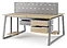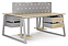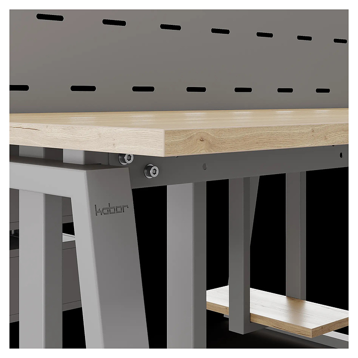 Офисный стол Кобор TR/2-180/160 aluminum/natural на 2 рабочих места используется в офисных помещениях и кабинетах руководителей. Модель оснащена опорами в форме трапеции. Каркас и опоры выполнены из металла, выкрашенного в цвет алюминиевый металлик (RAL9006), столешница – из ламинированной древесно-стружечной плиты (ЛДСП) цвета натуральный дуб (H1180 ST37). Дополнительные характеристики: