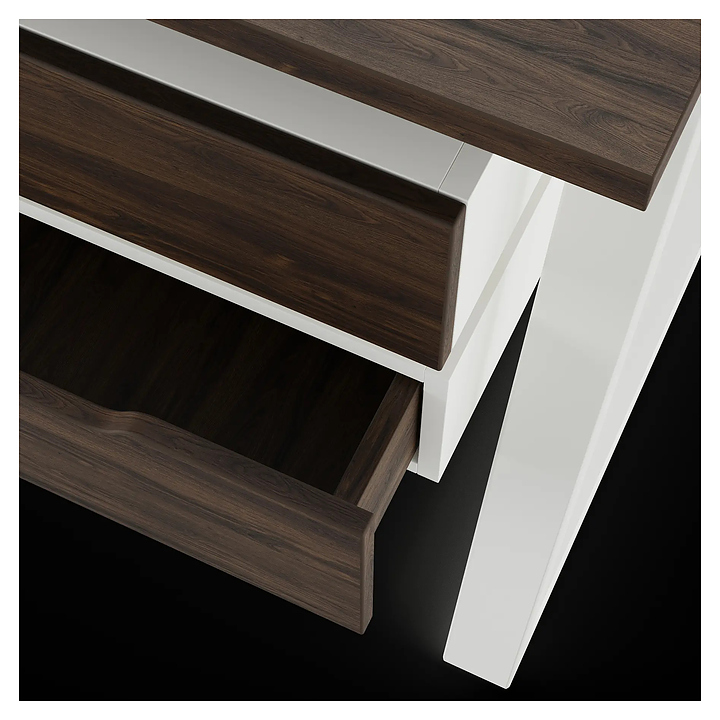 Офисный стол Кобор TR/2-100/120 white/charlston на 2 рабочих места используется в офисных помещениях и кабинетах руководителей. Модель оснащена опорами в форме трапеции. Каркас и опоры выполнены из металла, выкрашенного в цвет белый муар (RAL9016), столешница – из ламинированной древесно-стружечной плиты (ЛДСП) цвета дуб чарльстон (H3154 ST36). Дополнительные характеристики:
