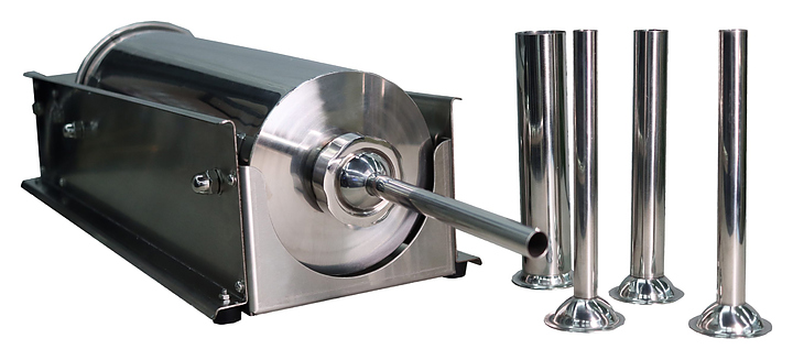 Колбасный шприц Rosso TG-3L используется на предприятиях общественного питания и торговли для набивки в оболочку колбас, сосисок, сарделек, паштетов, шпикачек и сыров. В комплект поставки входят 4 насадки с диаметром 16, 19, 25 и 38 мм, длиной 180 мм. Внимание! На фото аналогичная модель другого размера. Видео