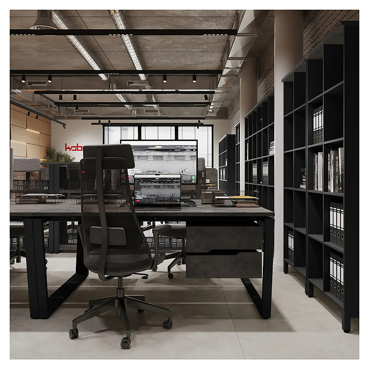 Офисный стол Кобор OTR/2-100/140 black/chicago на 2 рабочих места используется в офисных помещениях и кабинетах руководителей. Модель оснащена опорами в форме обратной трапеции. Каркас и опоры выполнены из металла, выкрашенного в цвет черный муар (RAL9005), столешница – из ламинированной древесно-стружечной плиты (ЛДСП) цвета бетон чикаго (F186 ST9). Дополнительные характеристики: