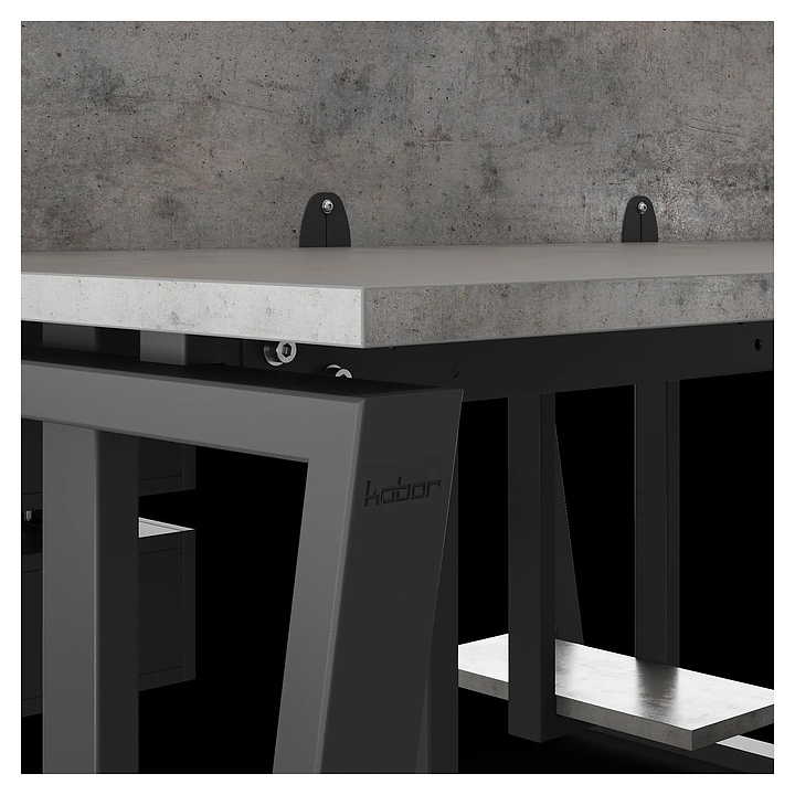 Офисный стол Кобор OTR/2-180/160 black/chicago на 2 рабочих места используется в офисных помещениях и кабинетах руководителей. Модель оснащена опорами в форме обратной трапеции. Каркас и опоры выполнены из металла, выкрашенного в цвет черный муар (RAL9005), столешница – из ламинированной древесно-стружечной плиты (ЛДСП) цвета бетон чикаго (F186 ST9). Дополнительные характеристики: