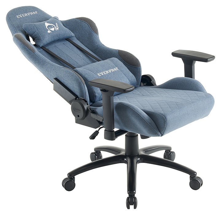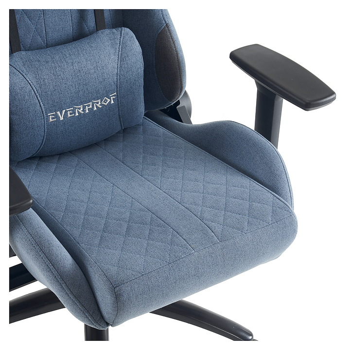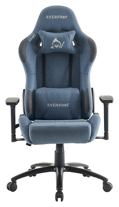 Геймерское кресло Everprof Ghost предназначено для комфортного размещения компьютерного игрока в специализированных клубах и домашних условиях. Модель оснащена мягкими сиденьем и высокой спинкой с фигурными бортами, прямыми уплощенными подлокотниками, опорной стойкой на устойчивом пятилучье и рычагами регулировки. Обивка выполнена из плотной ткани синего цвета, подушки, фронтальная и тыльная поверхности спинки декорированы вышивкой, опорная стойка – из металла, пятилучье – из металла с черным покрытием, подлокотники – из черного пластика, наполнитель – из эластичного пенополиуретана. В комплект поставки входят защитный колпачок газового патрона, набор крепежа, инструкция по сборке и заводская упаковка. Особенности: