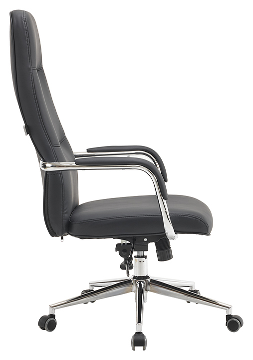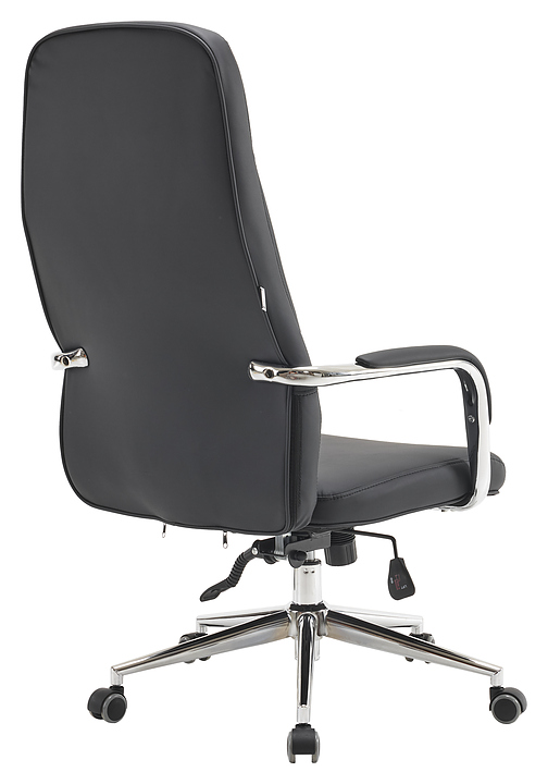 Офисное кресло Everprof Vesta предназначено для комфортного размещения руководителя в кабинетах и офисах различных учреждений. Модель оснащена мягкими сиденьем и высокой спинкой, подлокотниками с мягкими накладками, опорной стойкой на устойчивом пятилучье и рычагами регулировки. Обивка выполнена из экокожи с матовой черной поверхностью, опорная стойка – из металла, пятилучье и подлокотники – из металла с хромированной поверхностью, наполнитель – из эластичного пенополиуретана. В комплект поставки входят защитный колпачок газового патрона, набор крепежа, инструкция по сборке и заводская упаковка. Особенности: