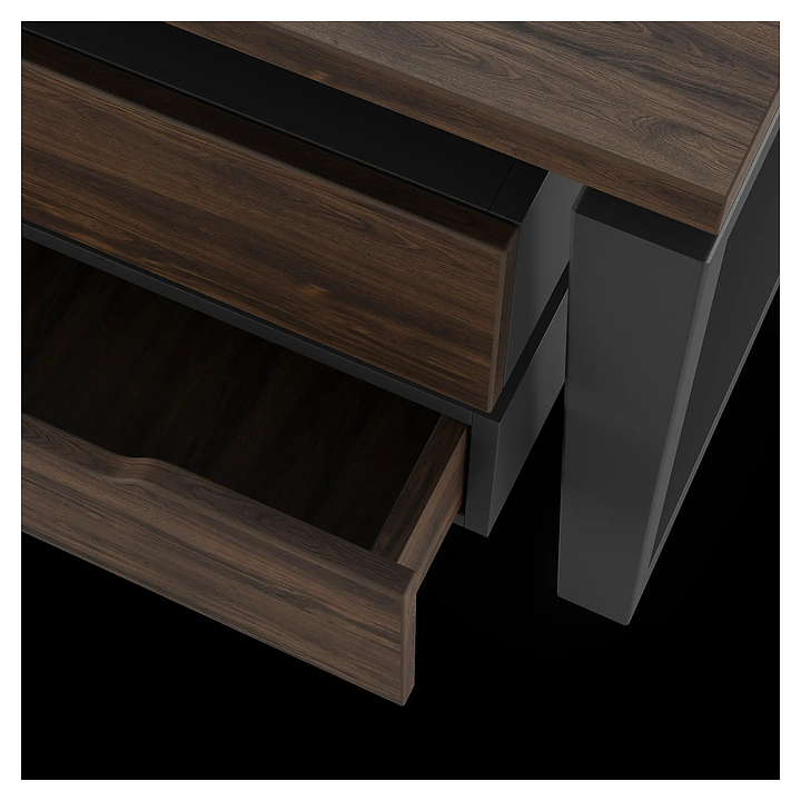 Офисный стол Кобор OTR/2-180/160 black/charlston на 2 рабочих места используется в офисных помещениях и кабинетах руководителей. Модель оснащена опорами в форме обратной трапеции. Каркас и опоры выполнены из металла, выкрашенного в цвет черный муар (RAL9005), столешница – из ламинированной древесно-стружечной плиты (ЛДСП) цвета дуб чарльстон (H3154 ST36). Дополнительные характеристики: