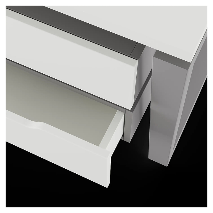 Офисный стол Кобор OTR/2-180/120 aluminum/premium на 2 рабочих места используется в офисных помещениях и кабинетах руководителей. Модель оснащена опорами в форме обратной трапеции. Каркас и опоры выполнены из металла, выкрашенного в цвет алюминиевый металлик (RAL9006), столешница – из ламинированной древесно-стружечной плиты (ЛДСП) цвета белый премиум (W1000 ST9). Дополнительные характеристики: