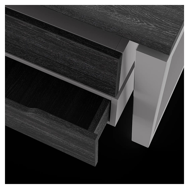 Офисный стол Кобор OTR/2-180/120 aluminum/glazed на 2 рабочих места используется в офисных помещениях и кабинетах руководителей. Модель оснащена опорами в форме обратной трапеции. Каркас и опоры выполнены из металла, выкрашенного в цвет алюминиевый металлик (RAL9006), столешница – из ламинированной древесно-стружечной плиты (ЛДСП) цвета черный дуб (H3178 ST37). Дополнительные характеристики: