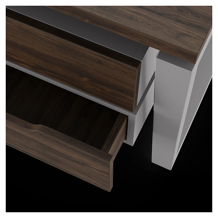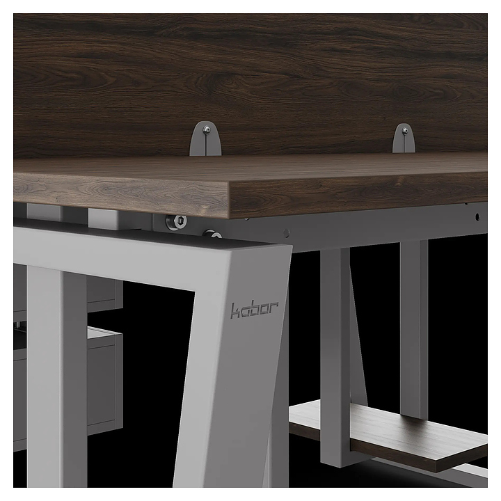 Офисный стол Кобор OTR/2-180/160 aluminum/charlston на 2 рабочих места используется в офисных помещениях и кабинетах руководителей. Модель оснащена опорами в форме обратной трапеции. Каркас и опоры выполнены из металла, выкрашенного в цвет алюминиевый металлик (RAL9006), столешница – из ламинированной древесно-стружечной плиты (ЛДСП) цвета дуб чарльстон (H3154 ST36). Дополнительные характеристики: