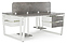 Офисный стол Кобор OTR/2-80/140 white/chicago на 2 рабочих места используется в офисных помещениях и кабинетах руководителей. Модель оснащена опорами в форме обратной трапеции. Каркас и опоры выполнены из металла, выкрашенного в цвет белый муар (RAL9016), столешница – из ламинированной древесно-стружечной плиты (ЛДСП) цвета бетон чикаго (F186 ST9). Дополнительные характеристики: