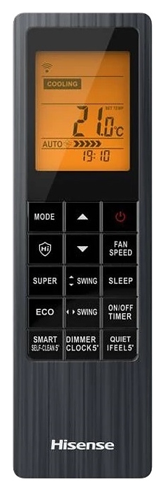 Настенная сплит-система Hisense AS-13UW4RVETG01(B) WI-FI серии BLACK CRYSTAL SUPER DC Inverter Wi-Fi используется для создания максимально кофмортных условий микроклимата в жилых, офисных и коммерческих помещениях. Модель состоит из внутреннего блока AS-13UW4RVETG01G(B) и наружного блока AS-13UW4RVETG01W(B). Наружный блок оснащен теплообменником, 3-лопастным вентилятором, защитными решеткой и крышкой для сервисных вентилей, внутренний блок – теплообменником, воздухозаборной решеткой, откидной лицевой панелью, подвижными горизонтальными и вертикальными жалюзи, электронным блоком управления и высококонтрастным светодиодным дисплеем индикации, пульт – информативным жидкокристаллическим дисплеем и кнопочной клавиатурой. Облицовка внутреннего блока выполнена из пластика черного цвета, фронтальная панель обтекаемой выпуклой формы с глянцевой поверхностью, корпус наружного блока – из листовой стали с антикоррозийным покрытием белого цвета, корпус пульта – из ударопрочного черного пластика.