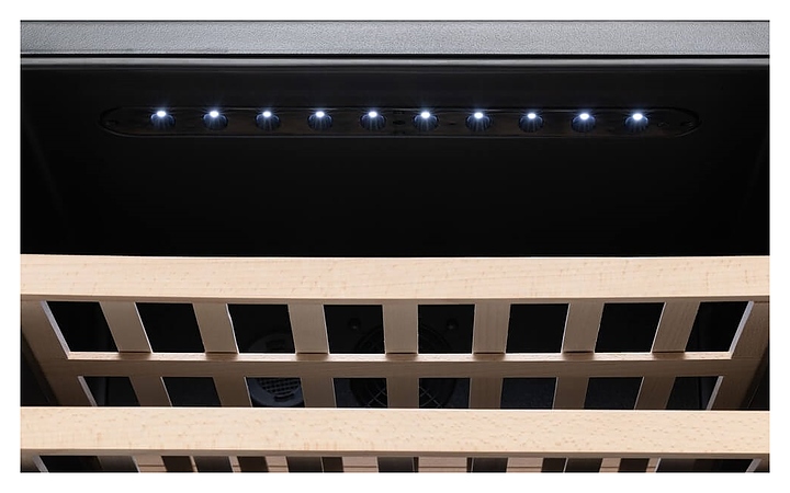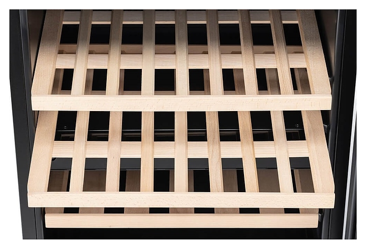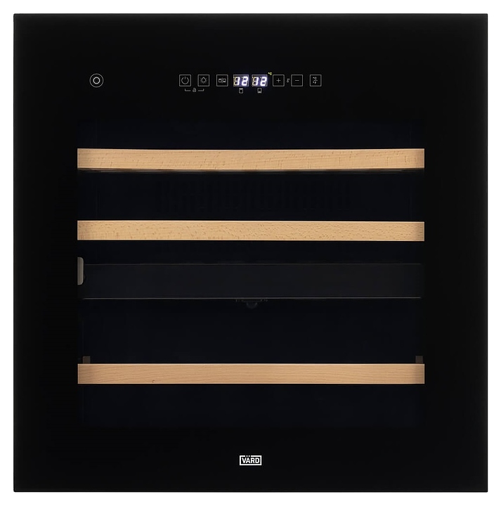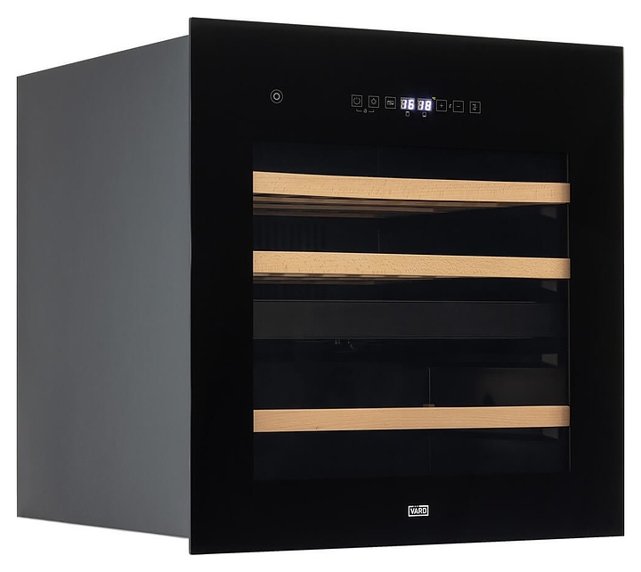 Винный шкаф VARD WCI6DS предназначен для хранения при оптимальных условиях и демонстрации бутилированного вина различных сортов в барах, ресторанах, специализированных магазинах, складских помещениях, гостиницах, а также домашних условиях. Модель оснащена холодильной камерой с 2 независимыми температурными зонами, правосторонней распашной дверью, обзорным остеклением, кабелем питания с вилкой, расположенной в верхней части фронта управления с сенсорными клавишами и светодиодным цифровым дисплеем с белой подсветкой индикации. Корпус выполнен из металла с антикоррозийным покрытием черного цвета, фронт двери – из стекла, полки – из массива буковой древесины. В комплект поставки входят 3 съемные полки с направляющими для размещения бутылок, набор крепежа, инструкция по эксплуатации, гарантийный талон и заводская упаковка. Особенности: