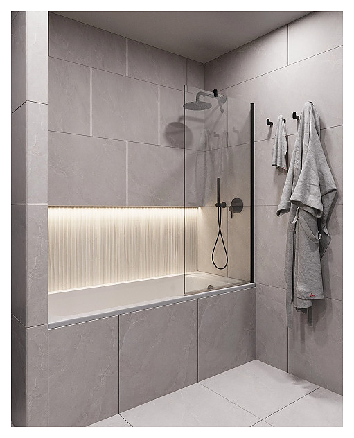 Шторка для ванны TIMO TC-90/03C-8 90х140 см, неподвижная, стекло прозрачное, профиль черный