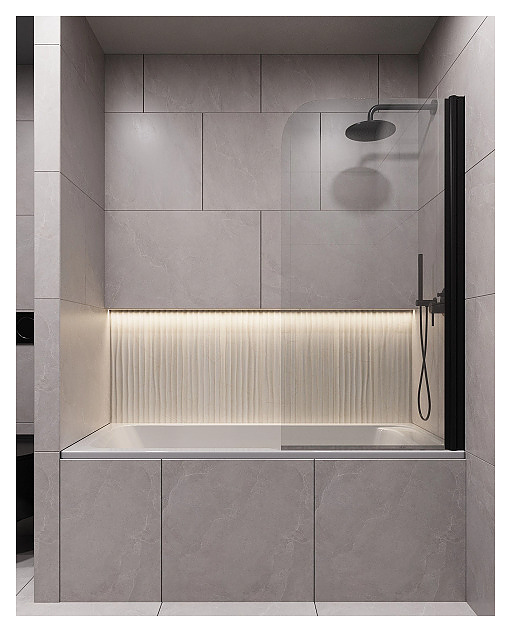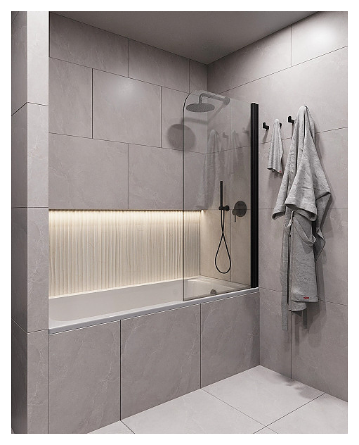 Шторка для ванны TIMO TCM-70/03C-6 70х140 см, поворотная на монопетле, стекло прозрачное, профиль черный
