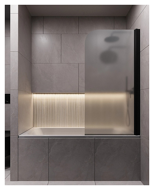 Шторка для ванны TIMO TCM-80/03F-6 80х140 см, поворотная на монопетле, стекло матовое, профиль черный
