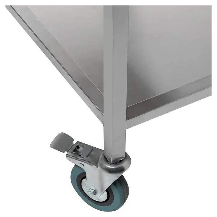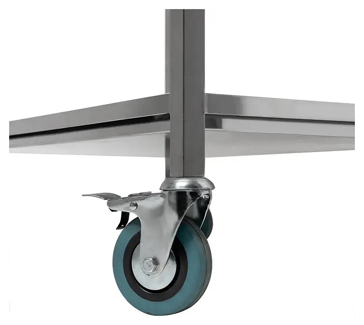 Тележка Кобор ТТ-120/60 используется на предприятиях общественного питания и торговли для временного хранения, транспортировки и естественной сушки тарелок, блюдец и другой посуды. Модель оснащена съемным поддоном и 4 поворотными колесами, 2 из которых с тормозом. Каркас выполнен из нержавеющей стали AISI 430. Дополнительные характеристики: