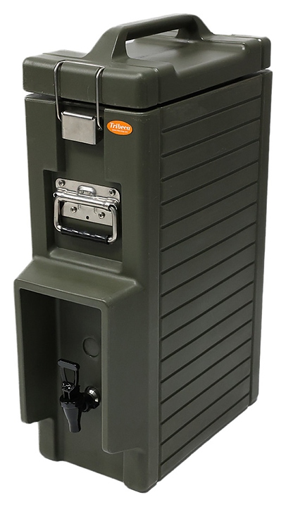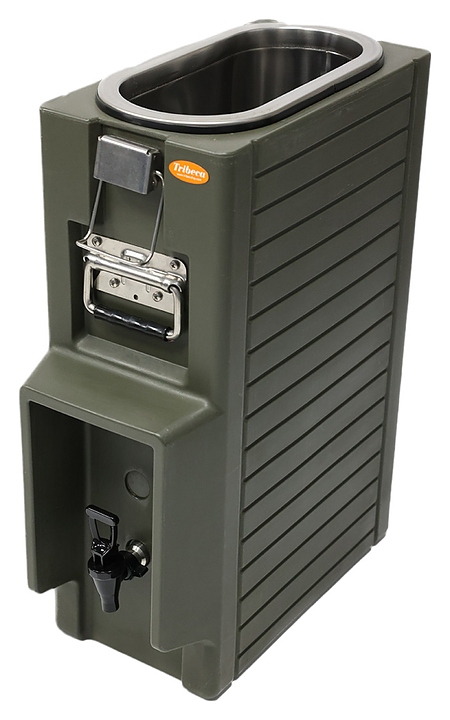 Термоконтейнер Tribeca 23 л используется службами доставки предприятий общественного питания и пищевой промышленности, а также в быту, во время туристических походов, пикника, рыбалки или дорожных путешествий для хранения и транспортировки холодных и горячих напитков в в автономных изотермических условиях. Модель оснащена краном для розлива и съемной плотно прилегающей крышкой. Корпус прямоугольного сечения выполнен из высококачественного полиэтилена низкой плотности (LLDPE) цвета хаки, застежки – из нержавеющей стали, термоизоляция – из экологичного пенополиуретана высокой плотности. Особенности:
