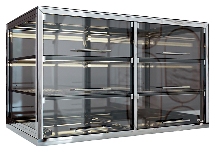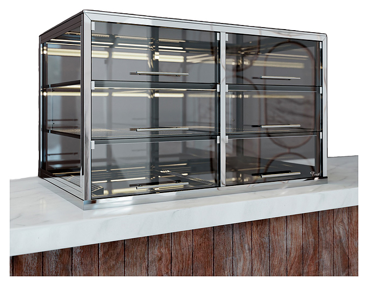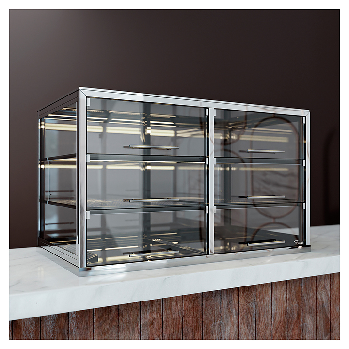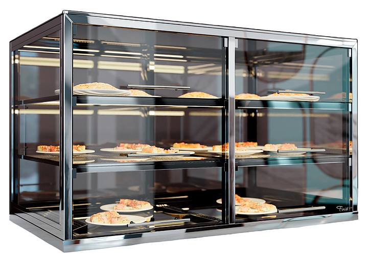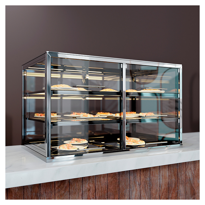 Встраиваемая тепловая витрина Finist ВТВ-1 предназначена для кратковременного хранения и предпродажной демонстрации горячих закусок, кондитерских изделий и выпечки на предприятиях общественного питания и торговли. Модель оснащена прямоугольно ориентированным куполом с остеклением и панелью управления. Выкладка осуществляется на дно и съемные перфорированные полки. Корпус и каркас выполнены из высококачественной нержавеющей стали, остекление – из стекла, откидные створки – из оргстекла. Особенности: