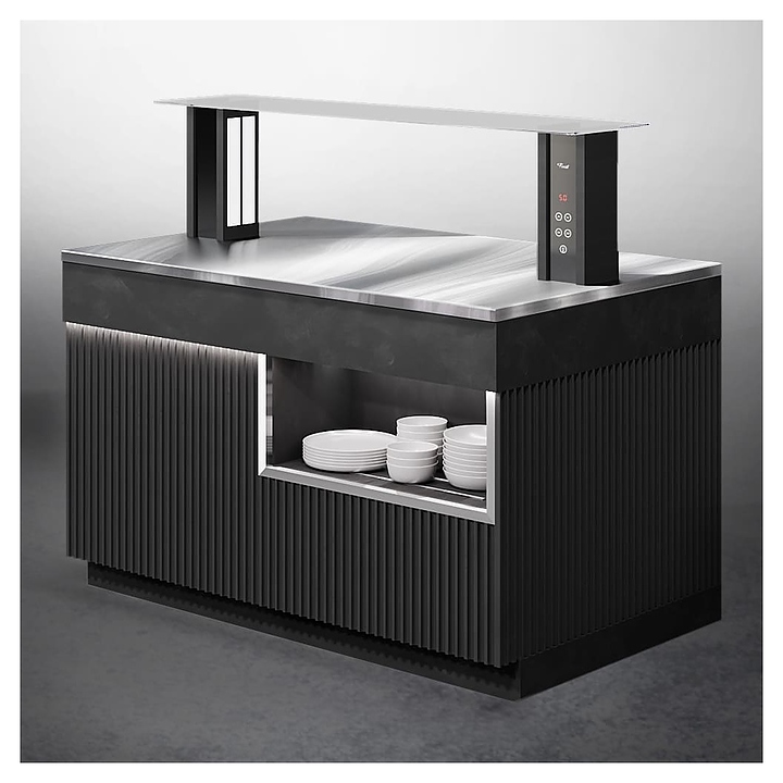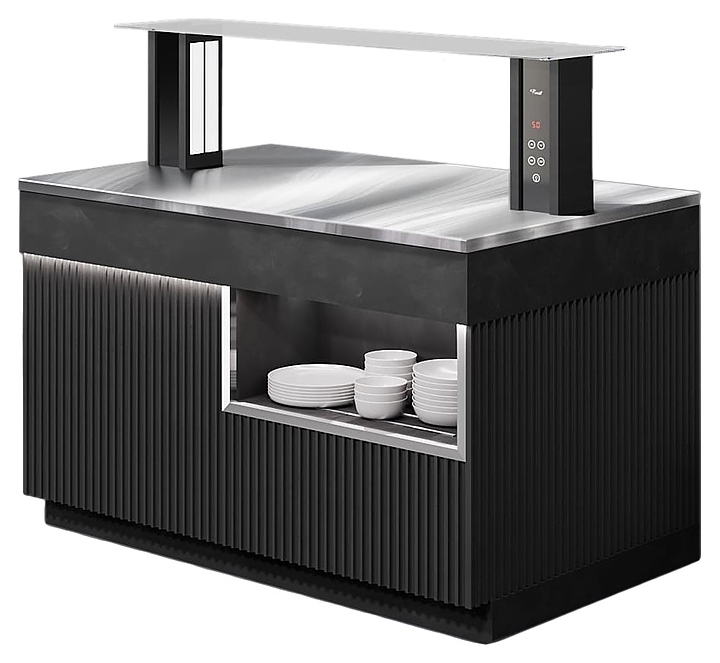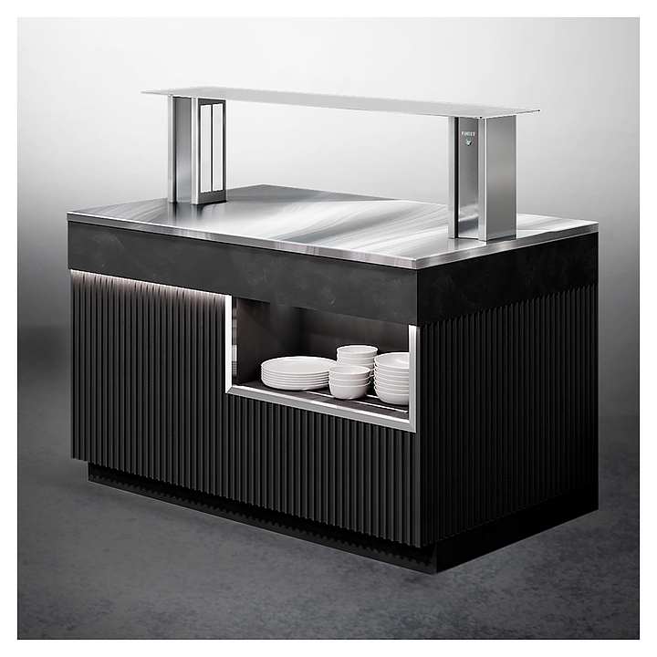 Нейтральный шведский стол Finist ШСм2150 используется в гостиницах, на предприятиях общественного питания и торговли для кратковременного хранения, демонстрации и раздачи путем самообслуживания различных блюд и закусок, не требующих особого температурного режима. Модель оснащена подставкой, сплошной столешницей и панелью управления. Столешница выполнена из высококачественной нержавеющей стали, облицовочные панели корпуса – из МДФ с покрытием дизайна «Сидней» черного цвета, верхняя полка – из просветленного стекла. Посуда не входит в комплект поставки и приобретаются отдельно. Особенности: