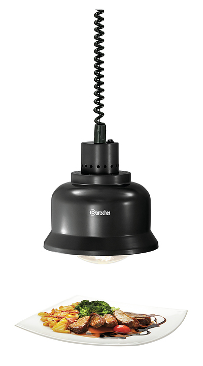 Подвесной подогреватель Bartscher IWL250D SW используется на предприятиях общественного питания и торговли для поддержания тарелок, готовых блюд и продуктов в разогретом состоянии с помощью инфракрасного излучения. Модель оснащена вентилвыключателем колыбельного типа. Корпус выполнен из металла с матовым внешним покрытием черного цвета. В комплект поставки входят инфракрасная лампа Philips Incandescent с прозрачным стеклом и набор крепежа. Особенности: