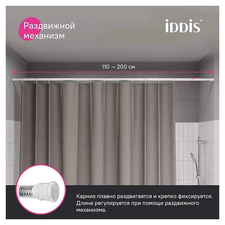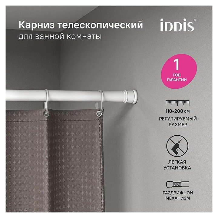 Карниз IDDIS Elegante SRW0120i14 предназначен для установки в ванных комнатах. Особенности: