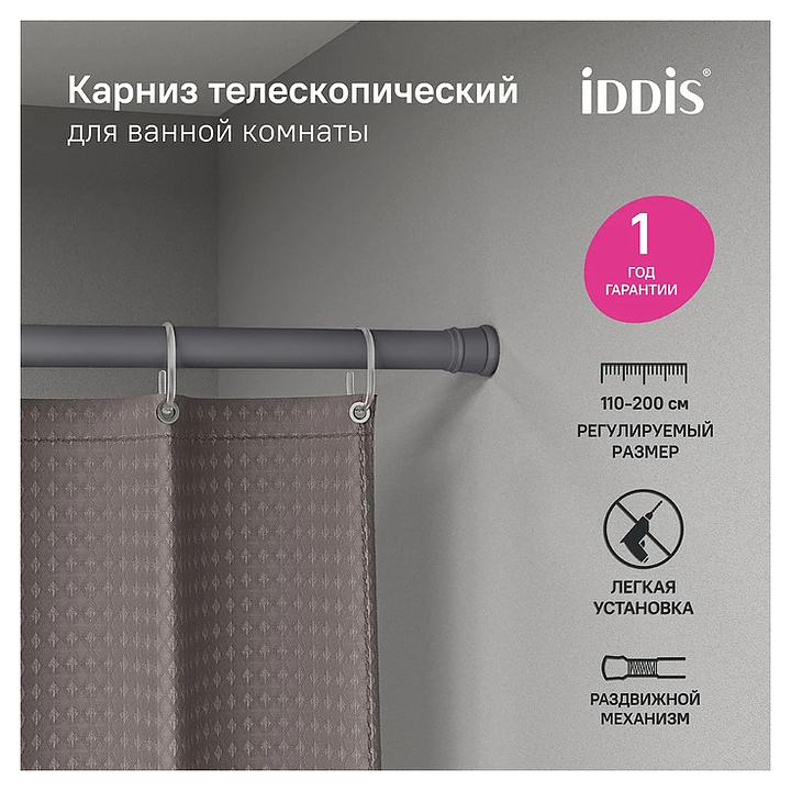 Карниз для ванны IDDIS Elegante SRC0120i14 110х200 см, прямой, серый матовый