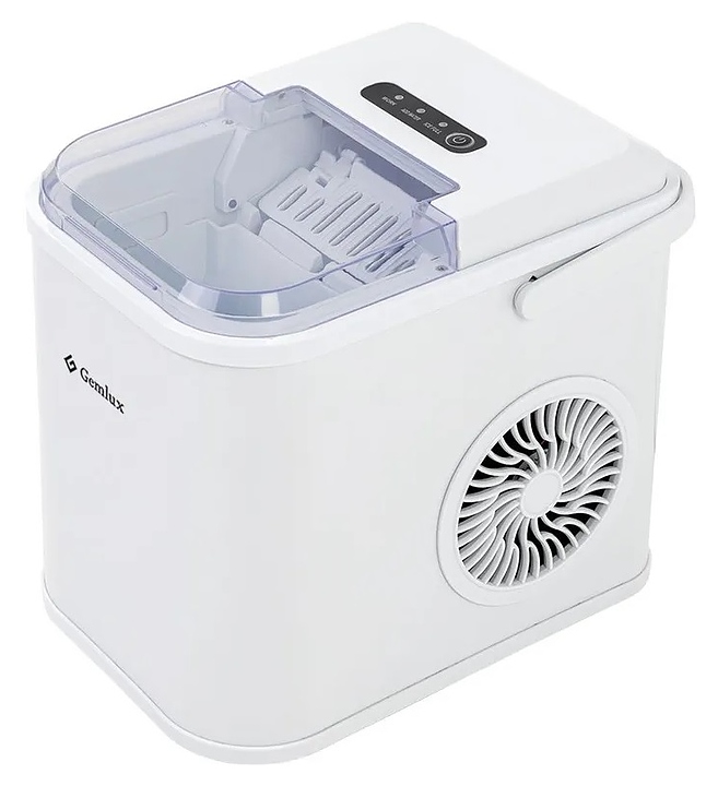 Настольный льдогенератор Gemlux GL-IM99W предназначен для производства пальчикового льда, используемого для охлаждения напитков в офисах, кемпингах и домашних условиях. Модель оснащена компрессорной системой охлаждения, расположенной сверху рабочей камерой откидной крышкой и электронной панелью. Корпус, контейнер и совок выполнены из белого пластика. В комплект поставки входят перфорированный контейнер с ручками, совок для льда, инструкция по эксплуатации, гарантийный талон и заводская упаковка. Особенности: