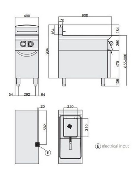 Напольная электрическая фритюрница Giorik Unika 900 FE9113 используется на предприятиях общественного питания и торговли для приготовления картофеля-фри и других продуктов путем их обжарки в большом количестве масла. Модель оснащена ванной с погружными трубчатыми электронагревателями (ТЭНами) и расположенной на наклонной фронтальной стенке электромеханической панелью управления. Внешняя облицовка корпуса выполнена из высококачественной нержавеющей стали. В комплект поставки входят корзина, крышка для ванны и поддон для сбора масла. Особенности:
