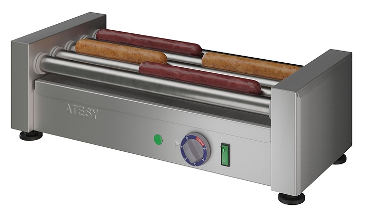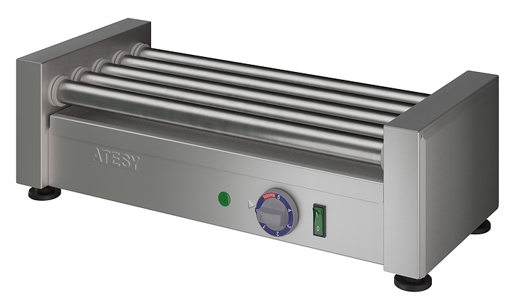 Роликовый гриль ATESY Комбат ГР-5Р-450-02 используется на предприятиях общественного питания и торговли для обжаривания сосисок, сарделек, а также мясных и рыбных батончиков цилиндрической формы. Модель оснащена терморегулятором и индикаторной лампой. Корпус и ролики выполнены из нержавеющей стали. Особенности: