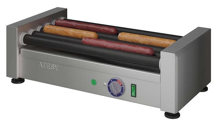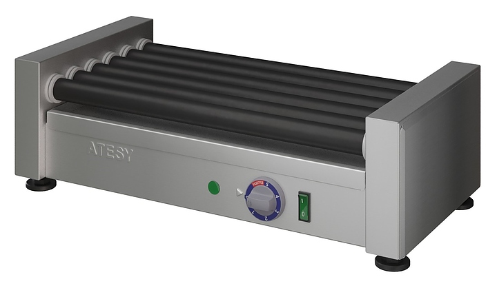 Роликовый гриль ATESY Комбат ГР-6Р-450-02-А используется на предприятиях общественного питания и торговли для обжаривания сосисок, сарделек, а также мясных и рыбных батончиков цилиндрической формы. Модель оснащена терморегулятором и индикаторной лампой. Корпус выполнен из нержавеющей стали, ролики - из черной стали с антипригарным покрытием. Особенности: