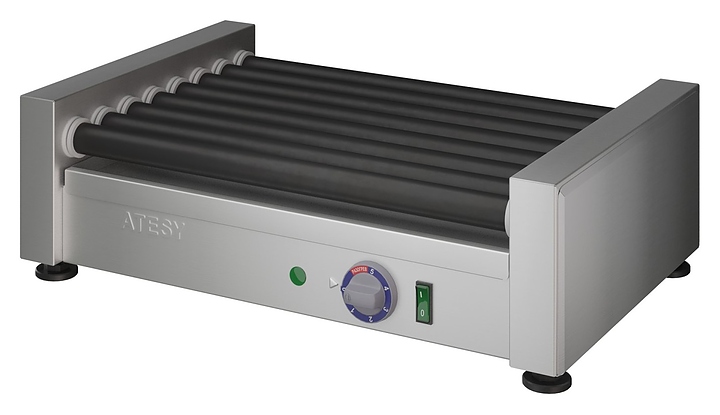 Роликовый гриль ATESY Комбат ГР-8Р-450-02-А используется на предприятиях общественного питания и торговли для обжаривания сосисок, сарделек, а также мясных и рыбных батончиков цилиндрической формы. Модель оснащена терморегулятором и индикаторной лампой. Корпус выполнен из нержавеющей стали, ролики - из черной стали с антипригарным покрытием. Особенности:
