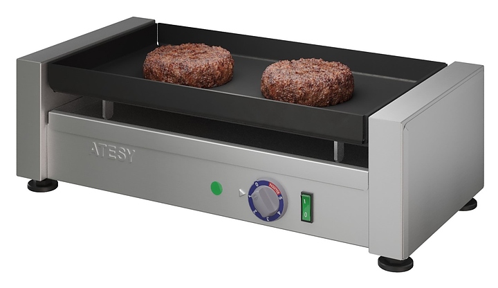 Гриль ATESY Комбат ГП-6Т-450-02 используется на предприятиях общественного питания и торговли для приготовления различных типов продуктов: мяса, рыбы, овощей и т.д. Модель оснащена 6 ТЭНами. Корпус выполнен из пищевой нержавеющей стали, жарочная поверхность - из алюминиевого сплава с антипригарным покрытием. Дополнительные характеристики: