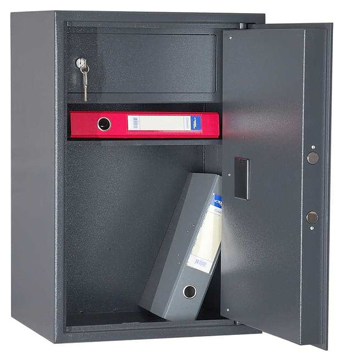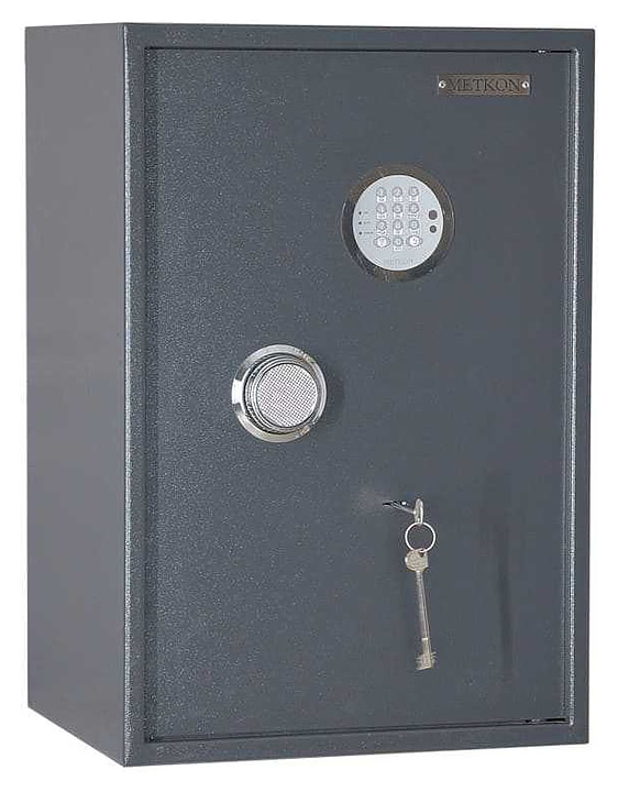 Сейф Меткон ШБМ-65ЭК предназначен для хранения ценных вещей и бумажных документов в гостиницах, отелях, офисах, квартирах и загородных домах. Модель оснащена кодовым электронным замком с ригельной системой запирания, трейзером и съемной полкой. Сейф крепится к стене и полу. Дополнительные характеристики: