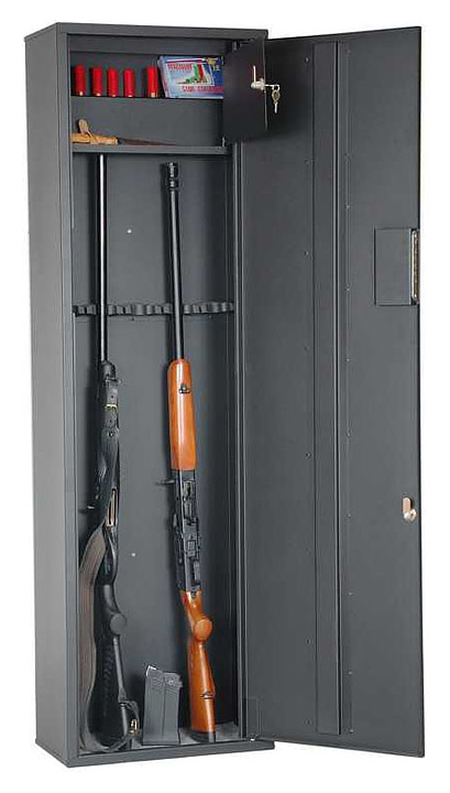 Сейф Меткон ОШН-7 предназначен для хранения оружия, патронов и принадлежностей. Модель оснащена 1 замком Cam-Lock и 1 ключевым сувальдным в двери, трейзером, 2 отверстиями для крепления к стене и ковриком. Сейф соответствует требованиям МВД. Ложементы выполнены из пластика. Дополнительные характеристики:
