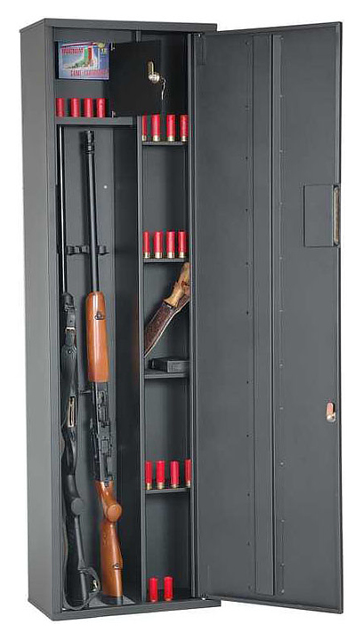 Сейф Меткон ОШН-8 предназначен для хранения оружия, патронов и принадлежностей. Модель оснащена 1 замком Cam-Lock и 1 ключевым сувальдным в двери, трейзером, 2 отверстиями для крепления к стене, 4 полками и ковриком. Сейф соответствует требованиям МВД. Ложементы выполнены из пластика. Дополнительные характеристики: