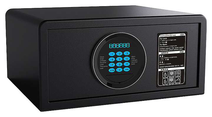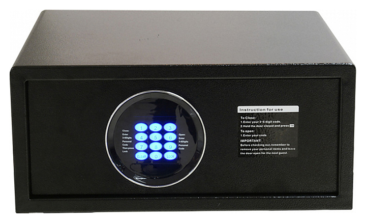 Сейф CoolMann OBT-2042MG предназначен для хранения документов, видеокамер, фотоаппаратов, ноутбуков и других ценных вещей в гостиницах, отелях, офисах, квартирах и загородных домах. Модель оснащена LED дисплеем, который отображает вводимый код, состояние замка сейфа «открыт/закрыт», информацию о низком заряде батарей, предупреждения о неправильно набранном коде и 5-и минутной блокировке сейфа после 4-х неправильных наборов. Корпус выполнен из высокопрочной стали. Особенности: