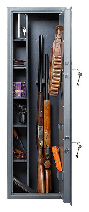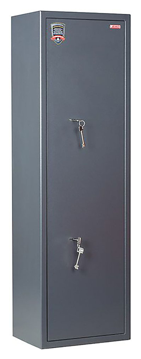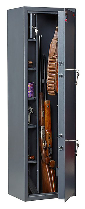 Сейф AIKO Филин 33 предназначен для хранения огнестрельного оружия, патронов и принадлежностей. Модель оснащена 2 ключевыми замками в двери, запирающимся патронным отделением, 3 полками, ложементами для ружей и анкерными отверстиями для крепления к стене. Сейф соответствует требованиям МВД. Корпус имеет порошковое покрытие. Дополнительные характеристики:
