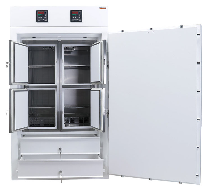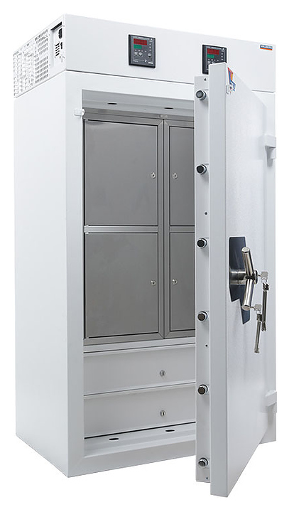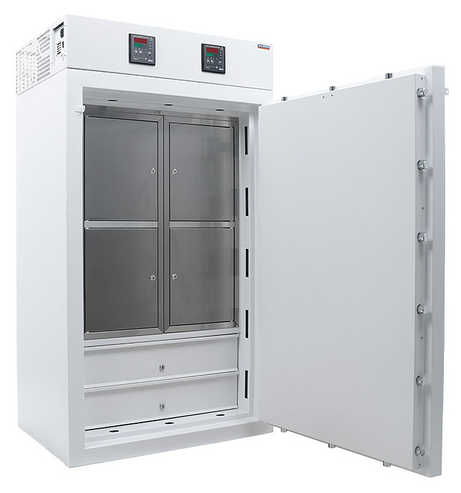 Медицинский сейф-термостат Valberg TS-3/100 предназначен для хранения наркотических средств, психотропных веществ и их прекурсоров, зарегистрированных в установленном порядке в РФ в качестве лекарственных средств медицинского применения. Модель оснащена 2 термостатами и 2 выдвижными, индивидуально освещаемыми и запираемыми ящиками без обеспечения тепловых режимов хранения. Многослойная защита стенок и двери сейфа, усиленная ригельная система запирания, защита от высверливания и выбивания замка KABA MAUER и ригелей обеспечивают устойчивость к взлому. Камеры-термостаты выполнены из нержавеющей стали, корпус покрыт эмалью. Особенности:
