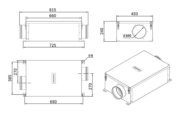 • Габаритные размеры с фланцами: 815x430x240 мм