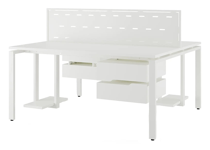 Офисный стол Кобор P/2-140/120 white/premium используется в офисных помещениях и кабинетах руководителей. Модель оснащена П-образными опорами. Каркас выполнен из металла, выкрашенного в цвет белый муар (RAL9016), столешница – из ламинированной древесно-стружечной плиты (ЛДСП) цвета белый премиум (W1000 ST9). Дополнительные характеристики: