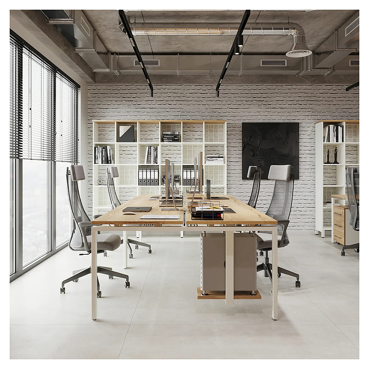 Офисный стол Кобор P/2-160/160 white/natural используется в офисных помещениях и кабинетах руководителей. Модель оснащена П-образными опорами. Каркас выполнен из металла, выкрашенного в цвет белый муар (RAL9016), столешница – из ламинированной древесно-стружечной плиты (ЛДСП) цвета натуральный дуб (H1180 ST37). Дополнительные характеристики: