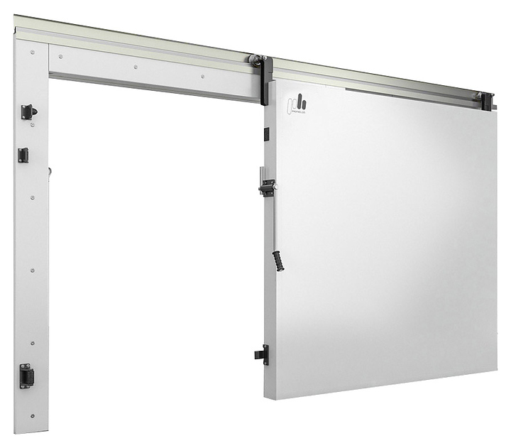 Откатная дверь ПРОФХОЛОД ОД ПХ 2400 4000 80 применяется для ограждения и теплоизоляции дверных проемов средне- и низкотемпературных камер любого объема, холодильных складов, терминалов и помещений с монорельсом. Модель устанавливается в местах прохода людей, провоза ручных тележек с грузом, механизированных погрузчиков и для стабилизации климатического режима в помещениях. Дверное полотно выполнено из оцинкованного стального листа с полиэфирной краской, рама - из листовой холоднокатаной стали с порошковой эмалевой краской, направляющие профили - из анодированного алюминия, уплотнители по периметру двери - из пористой резины EPDM с нанесенным слоем липкого армированного клея, защищенного протекторной бумагой, ролики - из пластика, ручки - целиком из оцинкованной стали с покрытием порошковой краской, теплоизоляционный наполнитель - из жесткого пенополиуретана. Особенности: