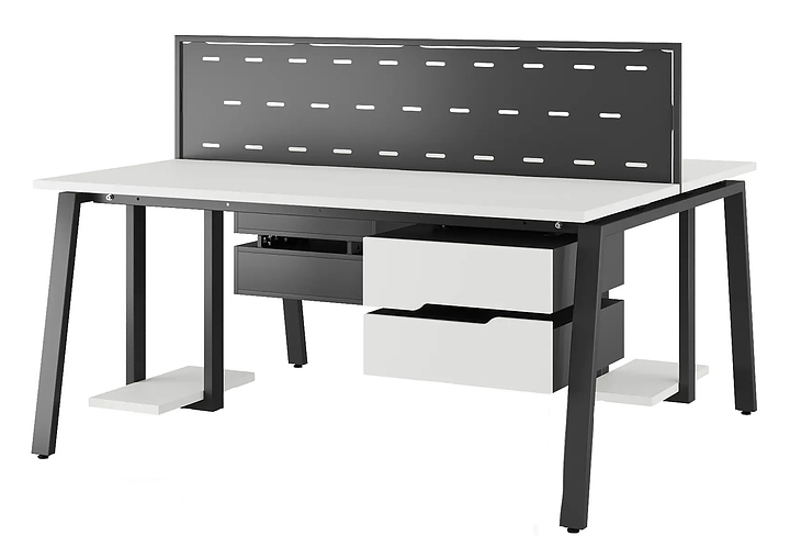Офисный стол Кобор A/2-100/140 black/premium используется в офисных помещениях и кабинетах руководителей. Модель оснащена А-образными опорами. Каркас выполнен из металла, выкрашенного в цвет черный муар (RAL9005) , столешница – из ламинированной древесно-стружечной плиты (ЛДСП) цвета белый премиум (W1000 SТ9). Дополнительные характеристики: