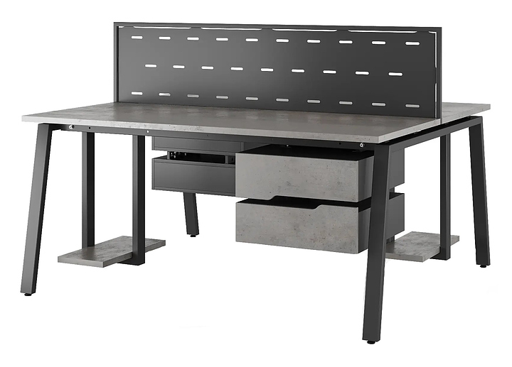 Офисный стол Кобор Стол A/2-140/120 black/chicago используется в офисных помещениях и кабинетах руководителей. Модель оснащена А-образными опорами. Каркас выполнен из металла, выкрашенного в цвет черный муар (RAL9005) , столешница – из ламинированной древесно-стружечной плиты (ЛДСП) цвета бетон чикаго (F186 SТ9). Дополнительные характеристики: