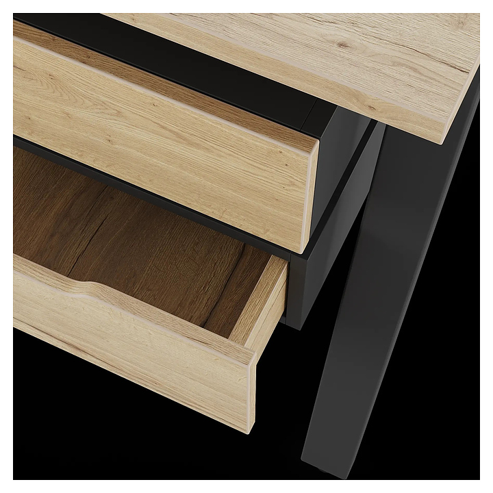 Офисный стол Кобор Стол A/2-120/120 black/natural используется в офисных помещениях и кабинетах руководителей. Модель оснащена А-образными опорами. Каркас выполнен из металла, выкрашенного в цвет черный муар (RAL9005) , столешница – из ламинированной древесно-стружечной плиты (ЛДСП) цвета дуб натуральный (H1180 ST37). Дополнительные характеристики: