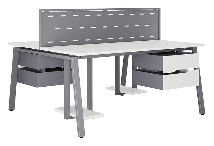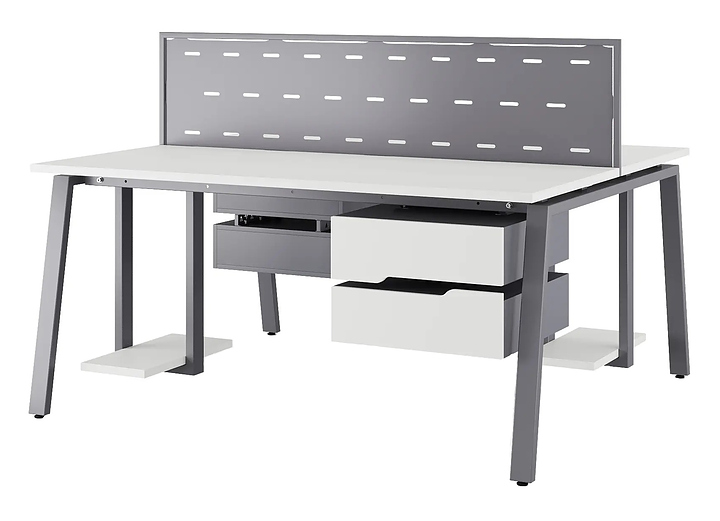 Офисный стол Кобор Стол A/2-80/160 graphite/premium используется в офисных помещениях и кабинетах руководителей. Модель оснащена А-образными опорами. Каркас выполнен из металла, выкрашенного в цвет графит муар (RAL7024) , столешница – из ламинированной древесно-стружечной плиты (ЛДСП) цвета белый премиум (W1000 ST9). Дополнительные характеристики: