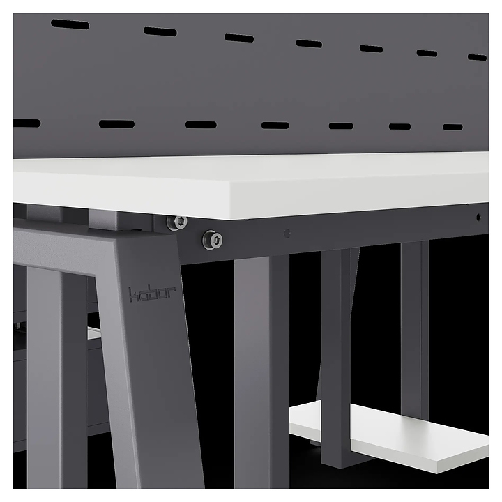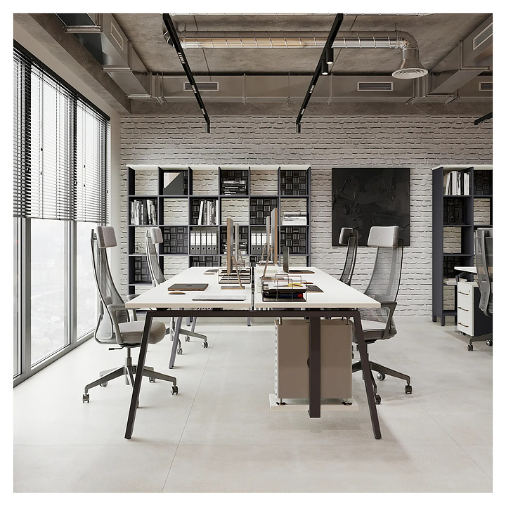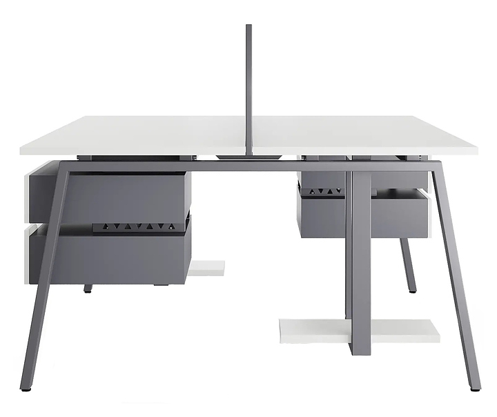 Офисный стол Кобор Стол A/2-160/160 graphite/premium используется в офисных помещениях и кабинетах руководителей. Модель оснащена А-образными опорами. Каркас выполнен из металла, выкрашенного в цвет графит муар (RAL7024) , столешница – из ламинированной древесно-стружечной плиты (ЛДСП) цвета белый премиум (W1000 ST9). Дополнительные характеристики: